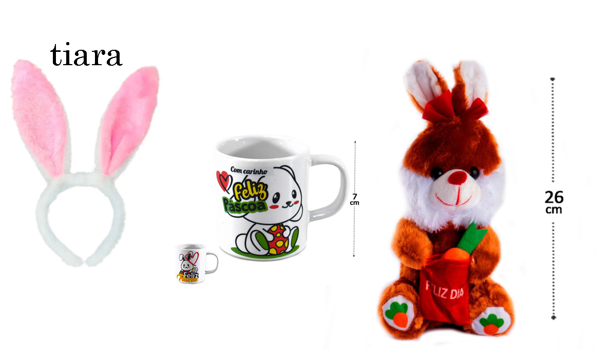 🐰🌼 Kit Feliz Páscoa: Coelho de Pelúcia, Caneca de Porcelana (100ml) e Tiara de Pelúcia